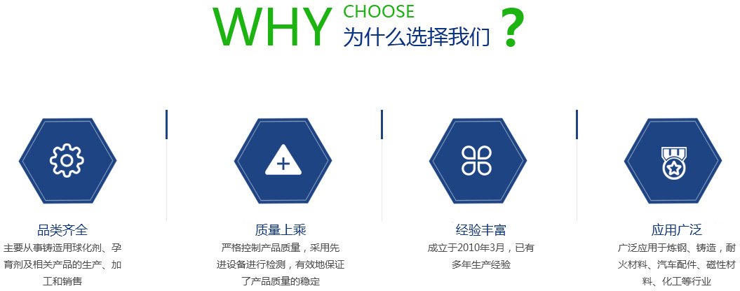 公司引進日本企業的生產管理模式,半自動化生產方式。目前生產能力:球化劑250T/月、孕育劑300T/月、鑄造相關品200T/月。為嚴格控制產品質量,公司采用國內的ICP-AES等離子體發射光譜儀對采購原